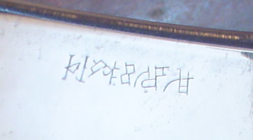 We need your help again to identify another unknown language. It appears on a knife. Thank you for your efforts!